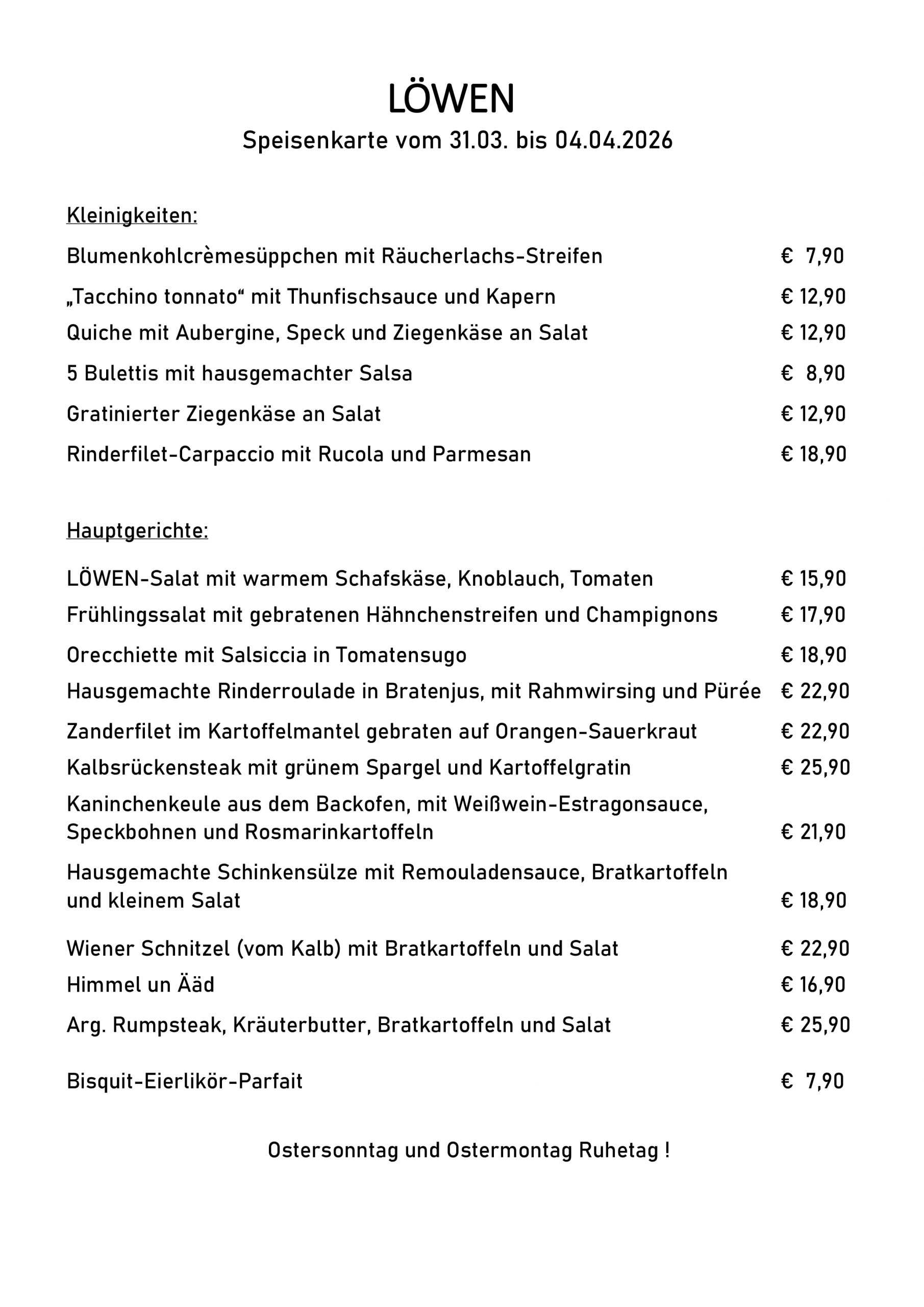 Wir haben Dienstag bis Samstag ab 17.00 Uhr geöffnet !